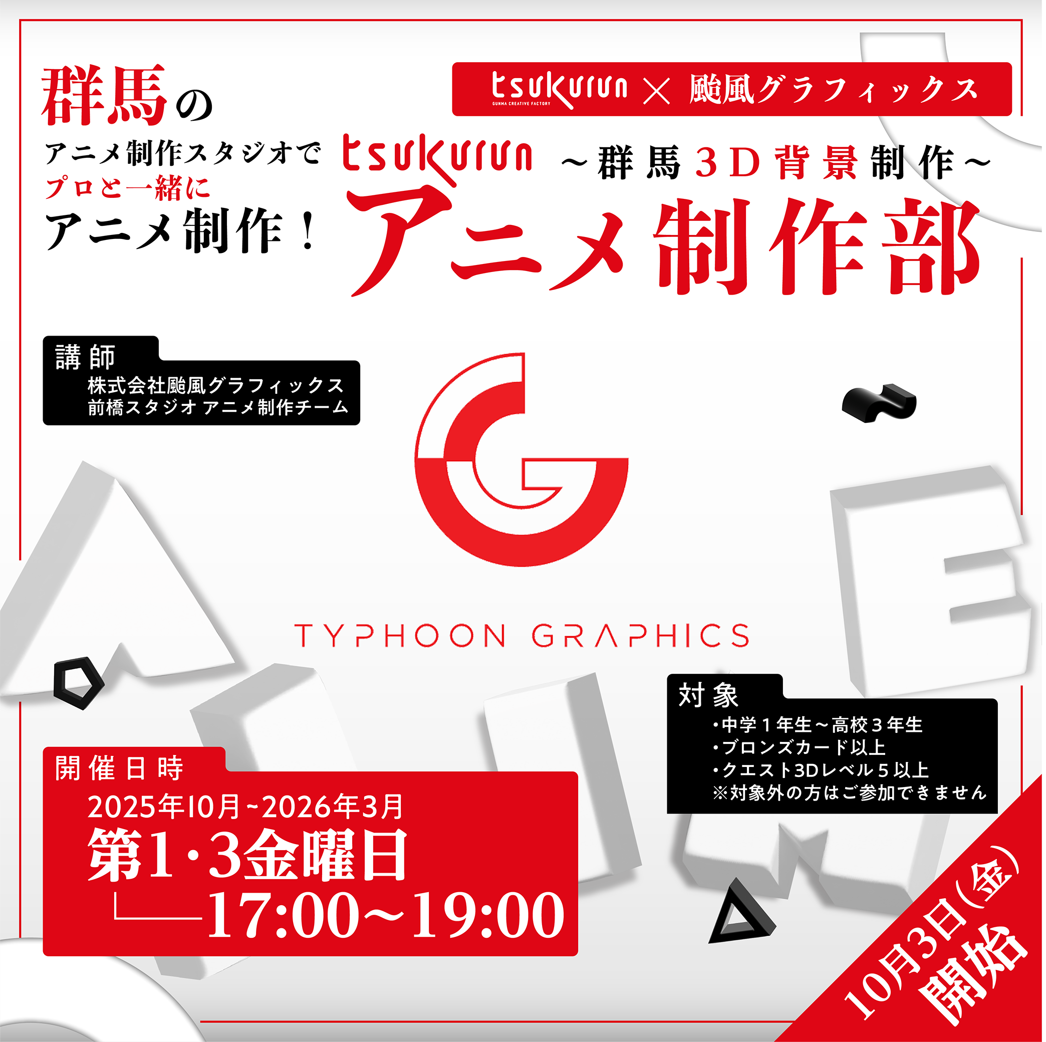 群馬のアニメ制作スタジオでプロと一緒にアニメ制作! tsukurunアニメ制作部 ~群馬3D背景制作~