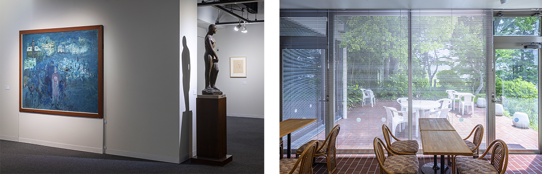 コレクション展 展示風景 庭に面したカフェ