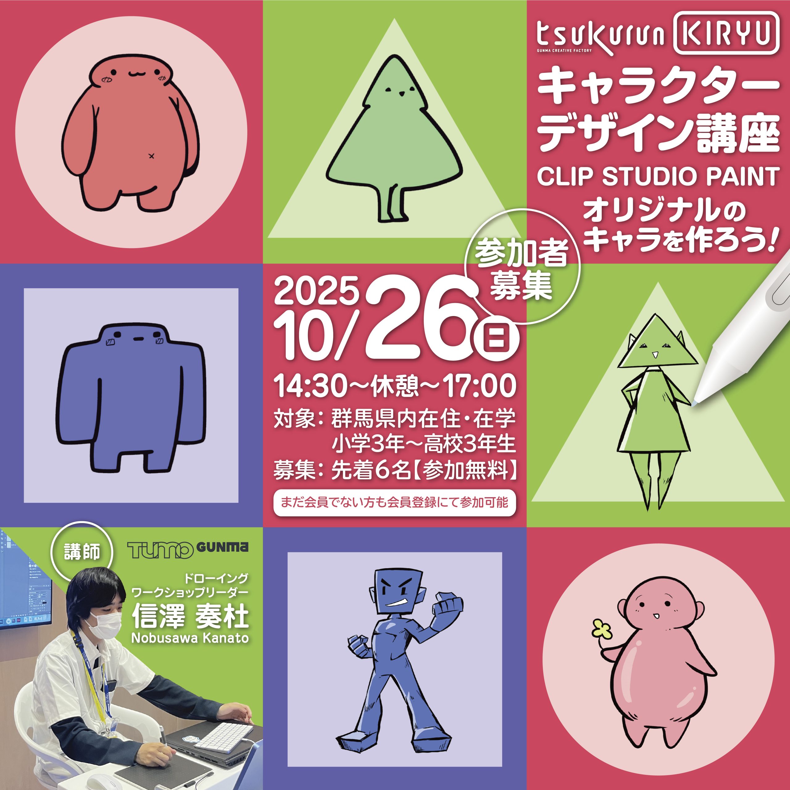 tsukurun KIRYU ☆ 10/26(日) ☆ キャラクターデザイン講座 オリジナルのキャラを作ろう!【講師:TUMO Gunma ドローイング ワークショップリーダー 信澤】