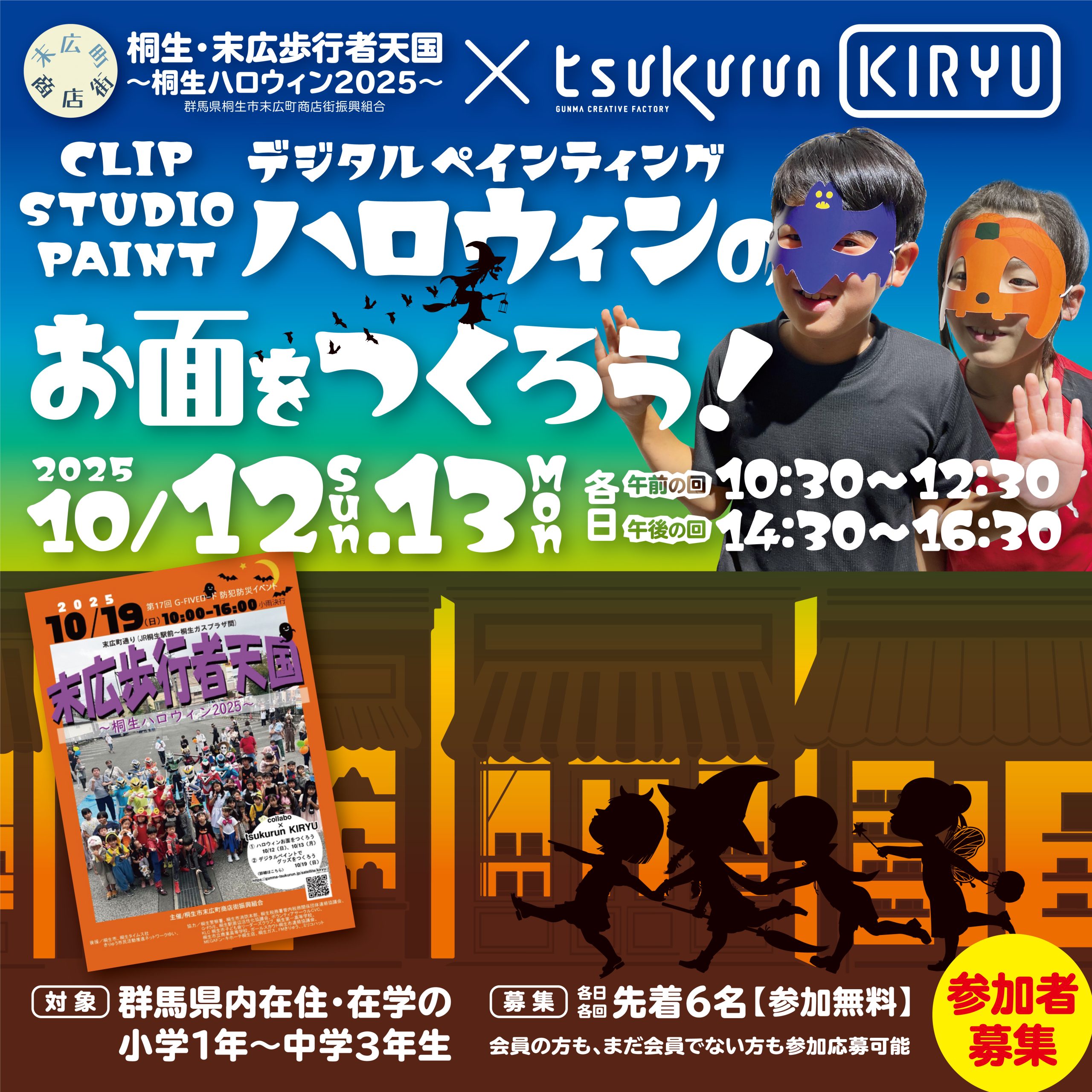 tsukurun KIRYU ☆ 10/12(日)・13(月祝) ☆ デジタルペインティング ハロウィンのお面をつくろう!【桐生・末広歩行者天国 〜桐生ハロウィン2025〜 コラボレーション】