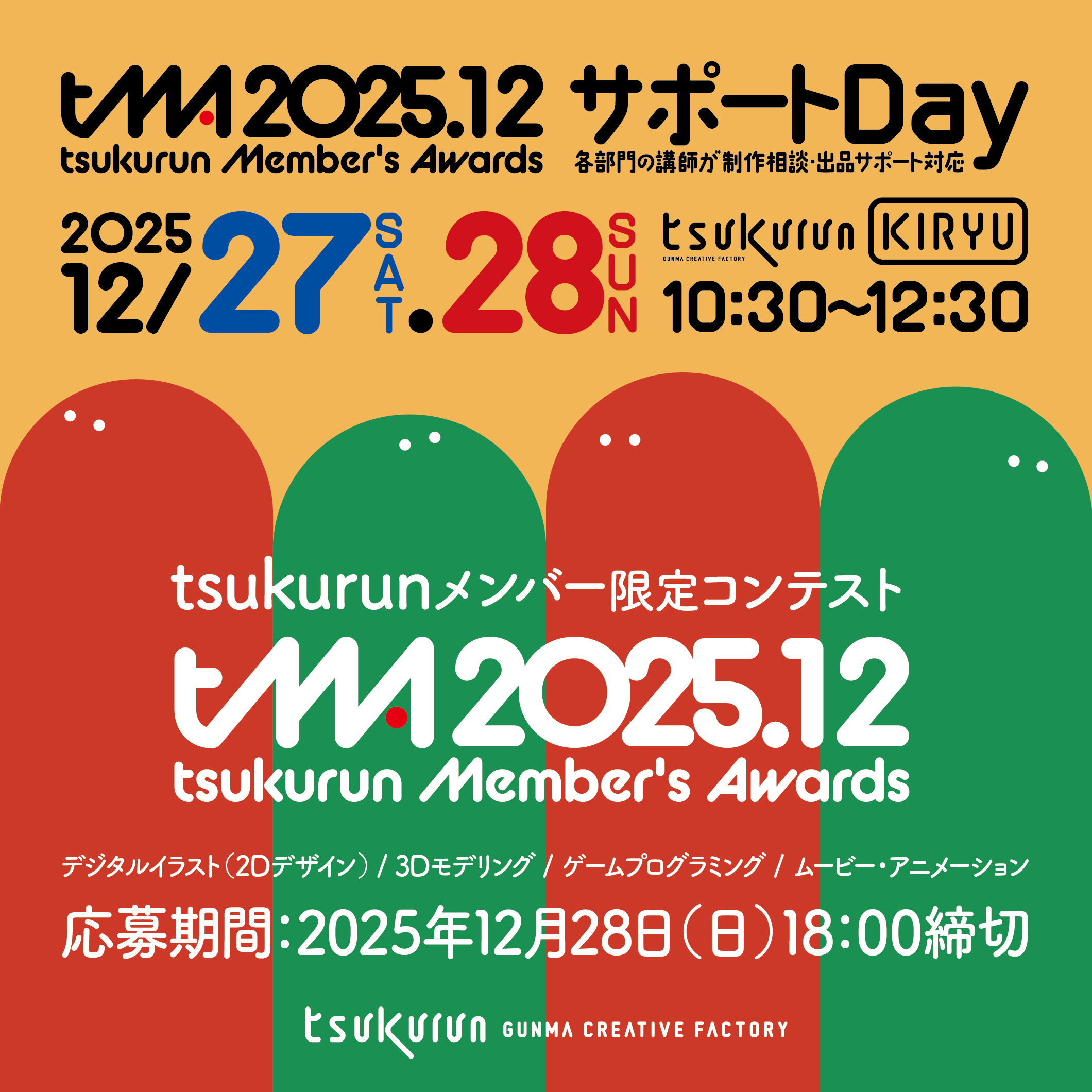 tsukurun KIRYU ☆ 12/27(土) 28(日) ☆ tMA tsukurunメンバー限定コンテスト サポートDay