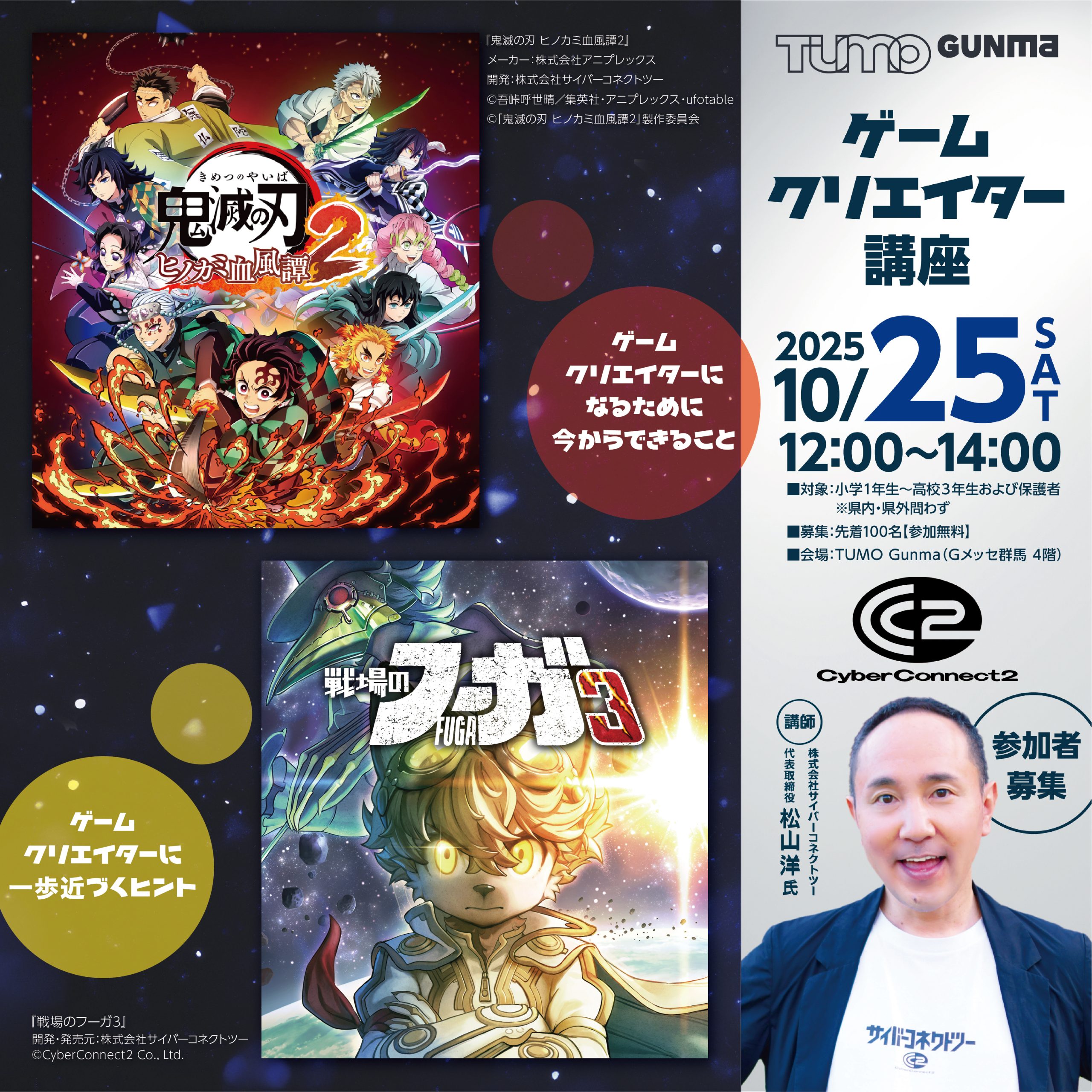 代表作に『.hack』シリーズ、『鬼滅の刃 ヒノカミ血風譚2』、『NARUTO-ナルト- ナルティメット』シリーズ、『ドラゴンボールZ KAKAROT』、『ジョジョの奇妙な冒険 オールスターバトル R』など。世界の第一線で活躍する松山社長からゲーム制作についてお話をお聞きできる貴重な機会です。ぜひ、ご参加ください!